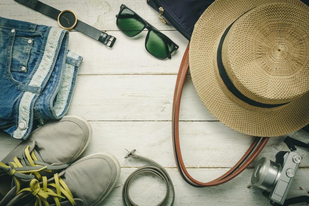 Spot-clean with mild soap and cool water, then air dry away from direct heat. Condition reclaimed leather sparingly, and brush denim grain with a soft cloth. Gentle care honors the material’s history while keeping your favorite pieces ready for adventure.